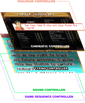 Third is the CinematicController class, which sits above the typing controller. This class displays all full-screen cinematics. Generally, this is the only way we call this class: